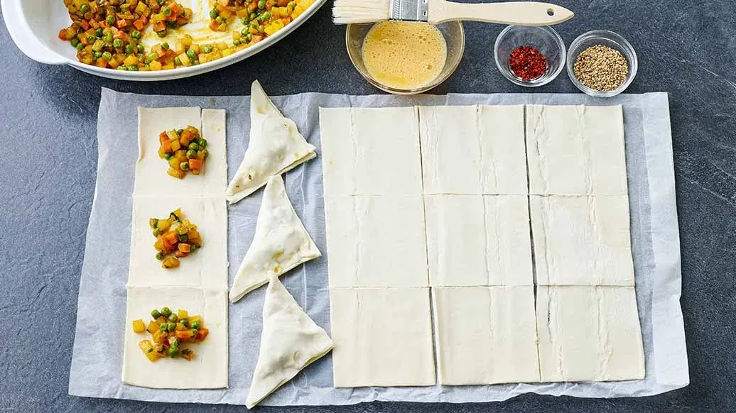 Hvis du dybsteger de foldede samosaer, bliver de endnu mere sprøde.