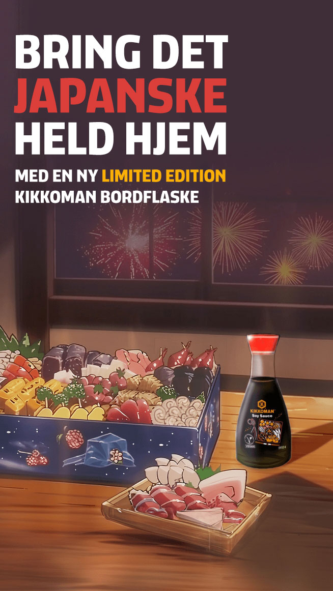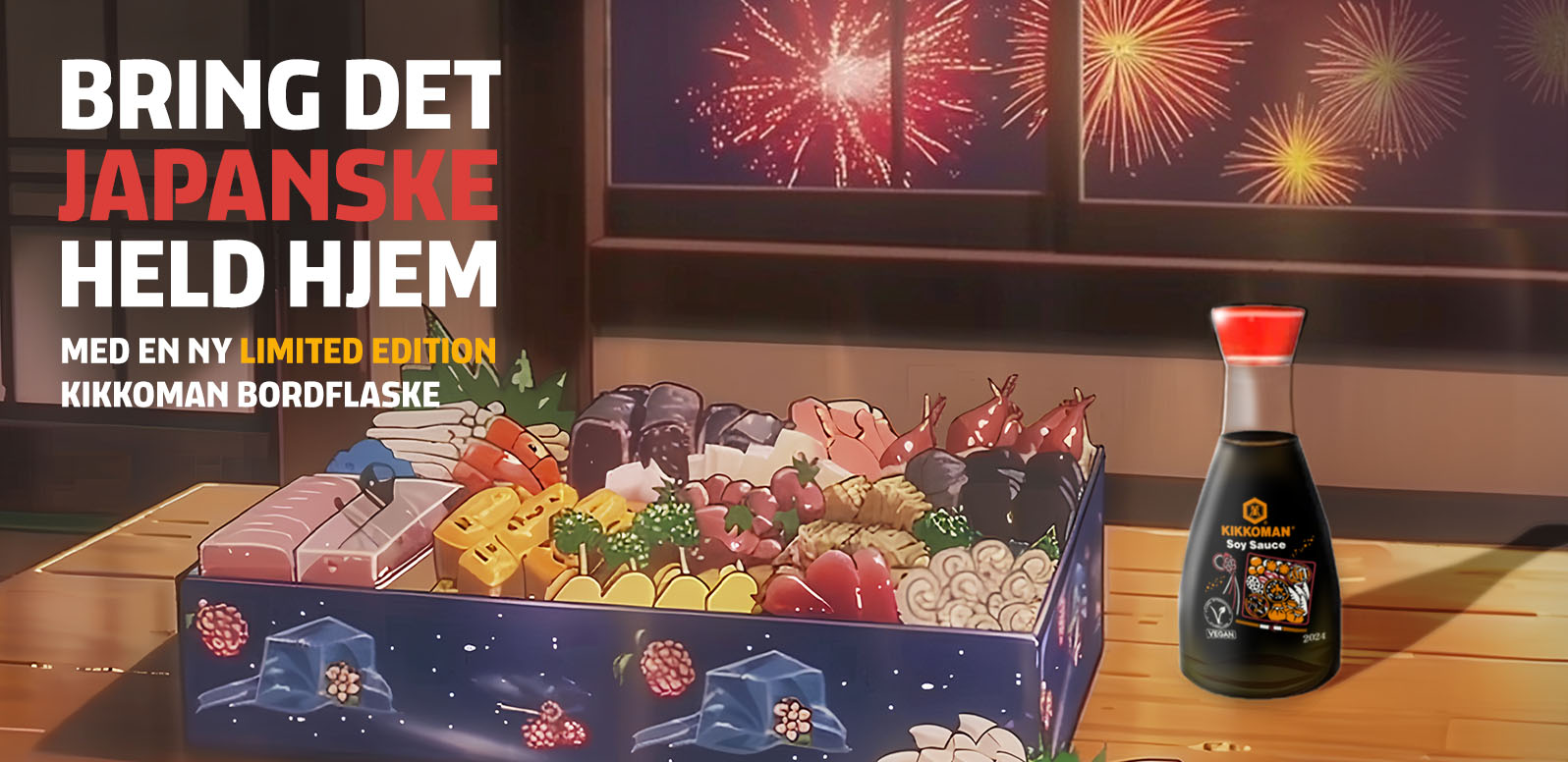 Sådan en æske, fyldt med osechi ryori, pryder med nye Limited Edition dispenserflaske fra Kikkoman. Kikkomans sojasauce er nemlig nært forbundet med japansk historie - og giver både japanske og europæiske festretter den helt perfekte smag.