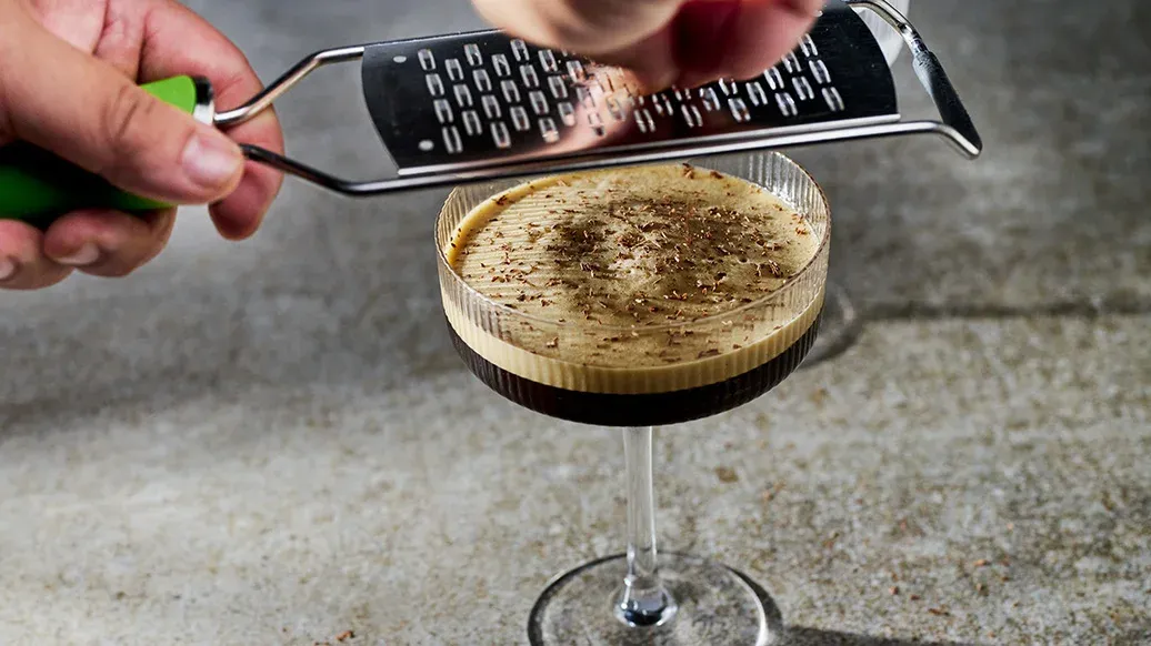 En udsøgt cocktail med kaffe, der kombinerer varmen fra whisky med en dyb espressosmag og et strejf af kirsebær. Den er perfekt til dem, der elsker dristige og overdådige smage.