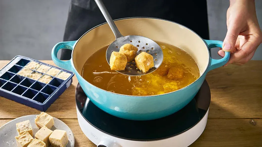 Steg de frosne takoyaki i varm olie, indtil de er gyldenbrune.