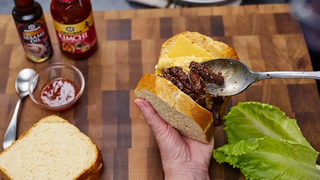 Denne trend fra Korea gør sit indtog på mere end blot morgenmadsborde. Den kombinerer scrambled eggs, let og sød brioche, premium oksekød og smagfuld ost med et krydret pift.