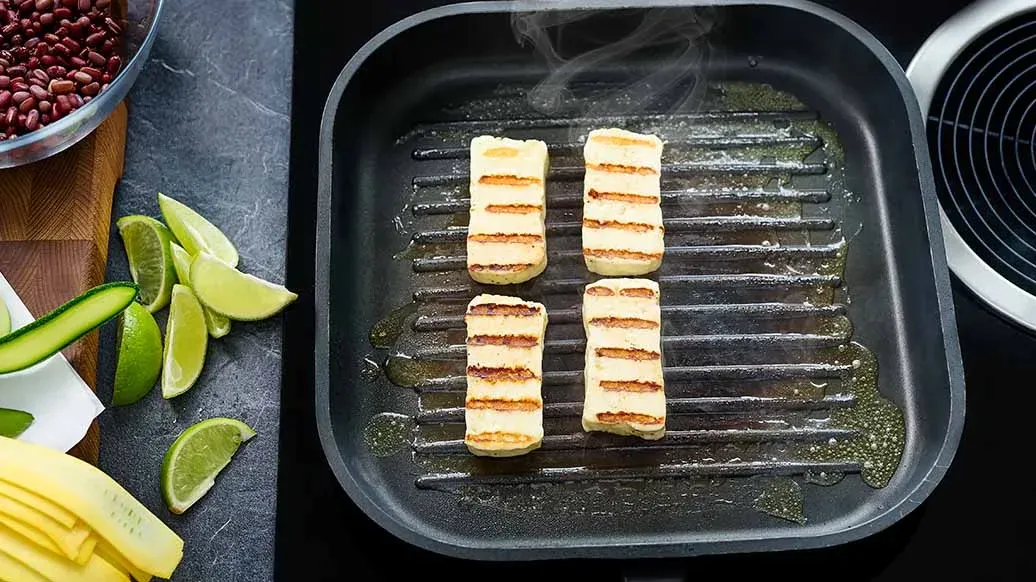 125 g halloumi – 1 lille bundt persille – Chiliflager, efter smag og behag – Limebåde fra step 1