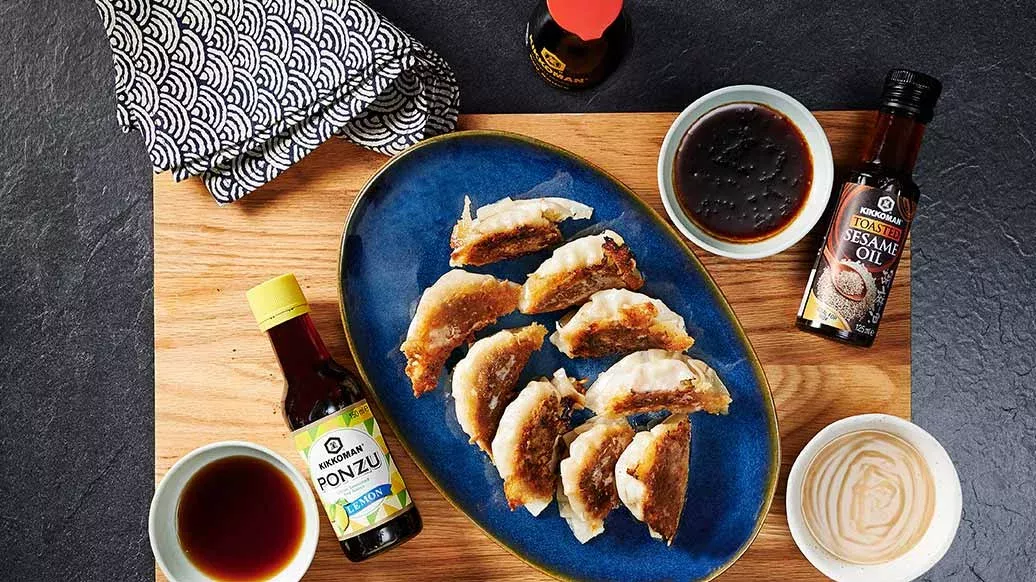 Gyoza er japanske dumplings. I denne enkle opskrift på dumplings med hakket kød og grøntsager bliver de stegt, indtil de er gyldne og sprøde. Server dem sammen med en eller flere af vores saucer som dip.