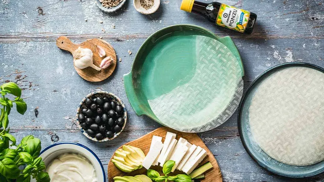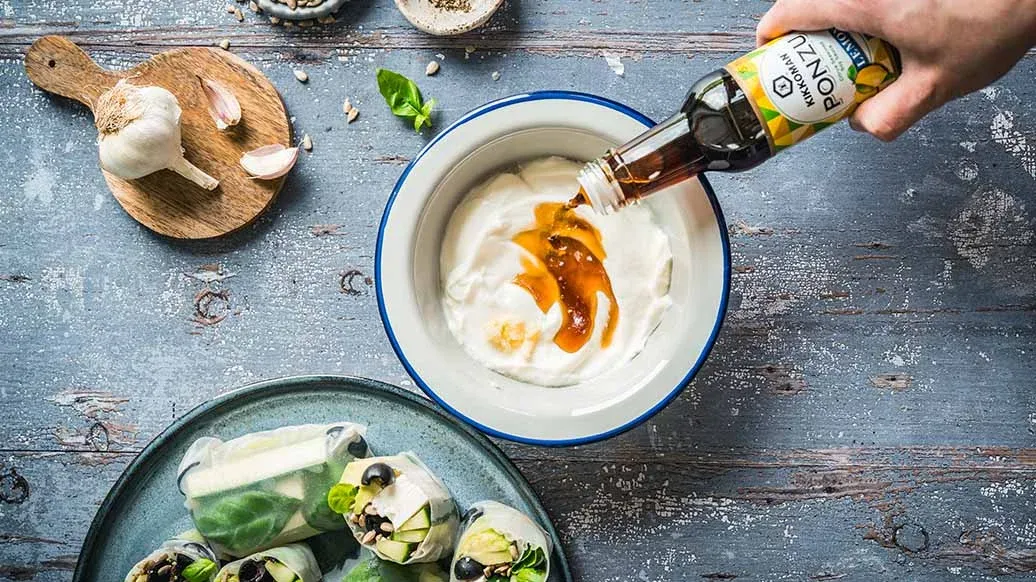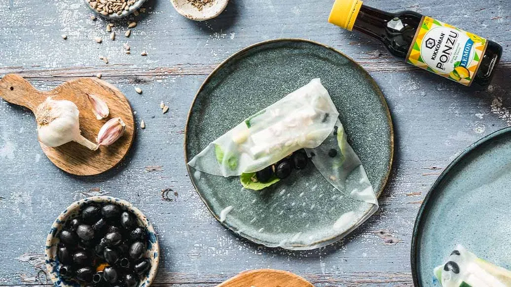 Lette middelhavs-rispapirruller fyldt med sprøde grøntsager, feta og oliven, serveret med en citrusagtig dip af græsk yoghurt smagt til med Kikkoman ponzu citrus sojasauce. Lækker som frokost eller som en frisk snack fyldt med smag.